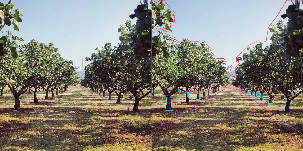 - The road polygons represent the areas surrounding the walnut trees, intended for nut harvesting machines.